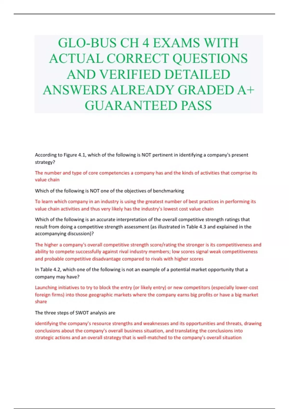 GLO-BUS CH 4 EXAMS WITH ACTUAL CORRECT QUESTIONS AND VERIFIED DETAILED ANSWERS ALREADY GRADED A+ GUARANTEED PASS