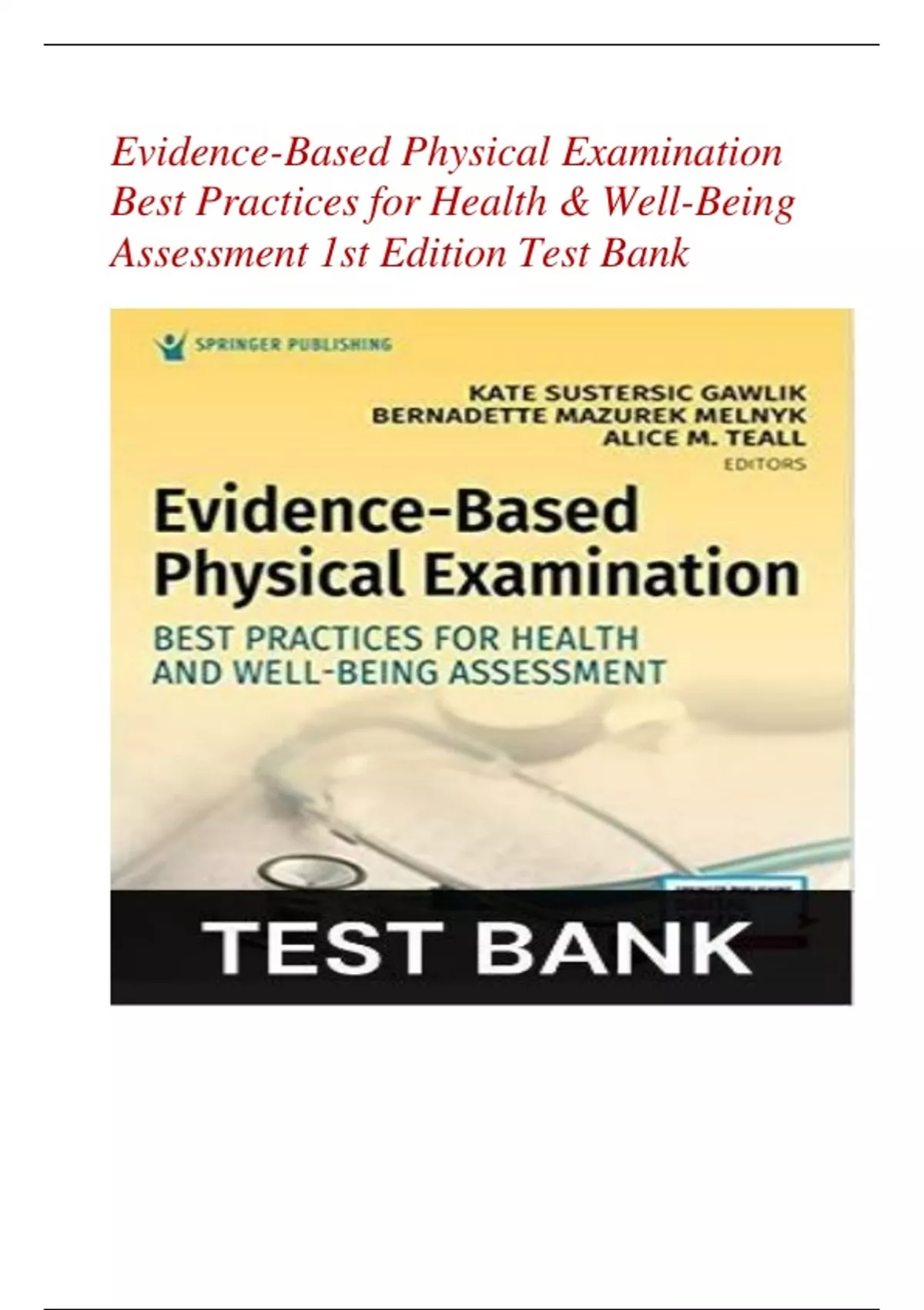 COMPLETE TEST BANK for Evidence-Based Physical Examination: Best Practices for Health & Well-Being Assessment(1st Edition ) Kate Sustersic Gawlik,2024 ||GRADED A+|| NEW UPDATE