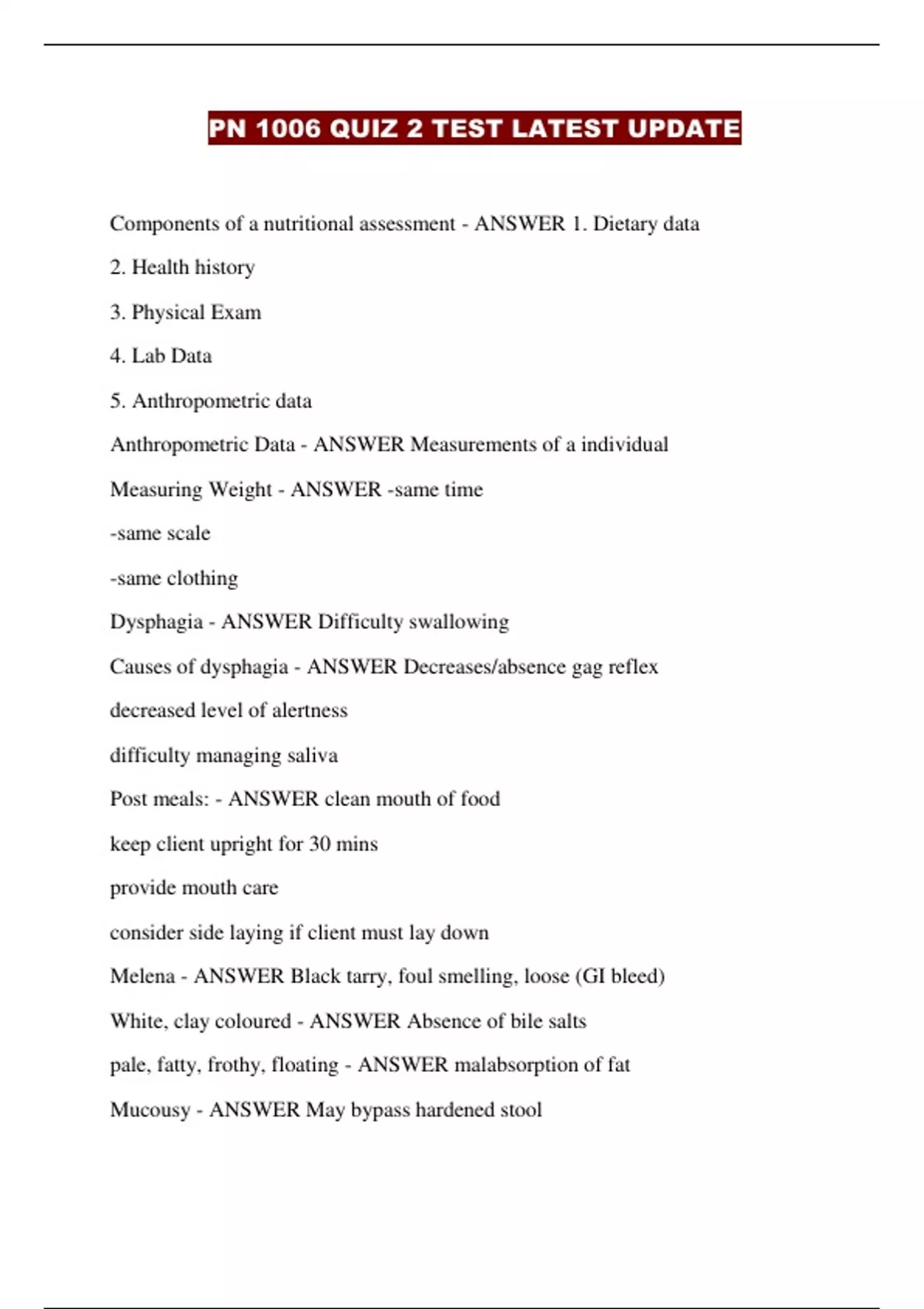 PN 1006 QUIZ 2 TEST LATEST UPDATE...