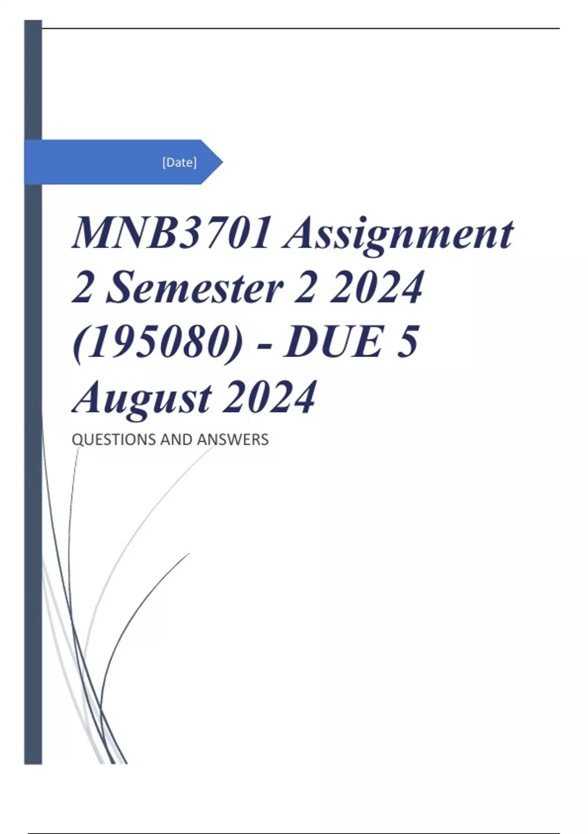 , MNB3701 Assignment 2 Semester 2 2024 (195080) - DUE 5 August 2024