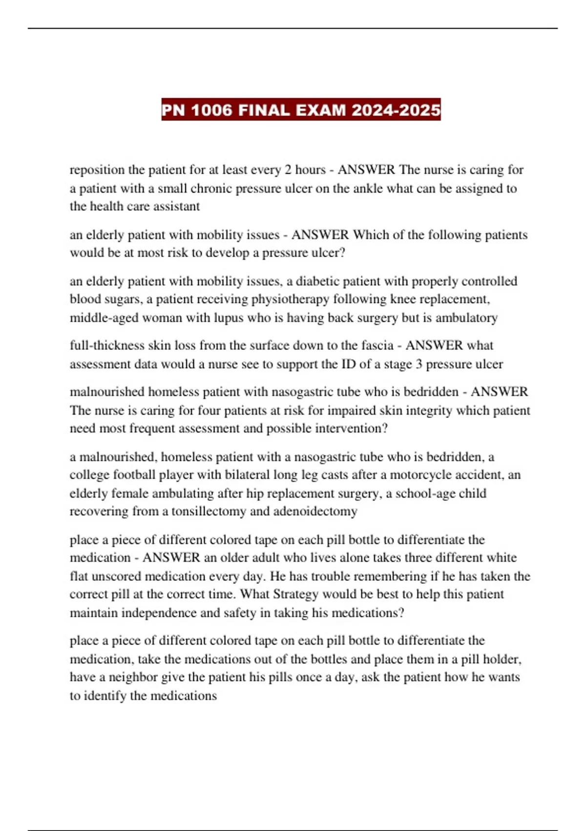 PN 1006 /PN1006 CURRENT BUNDLED EXAMS WITH QUESTIONS AND VERIFIED ANSWERS