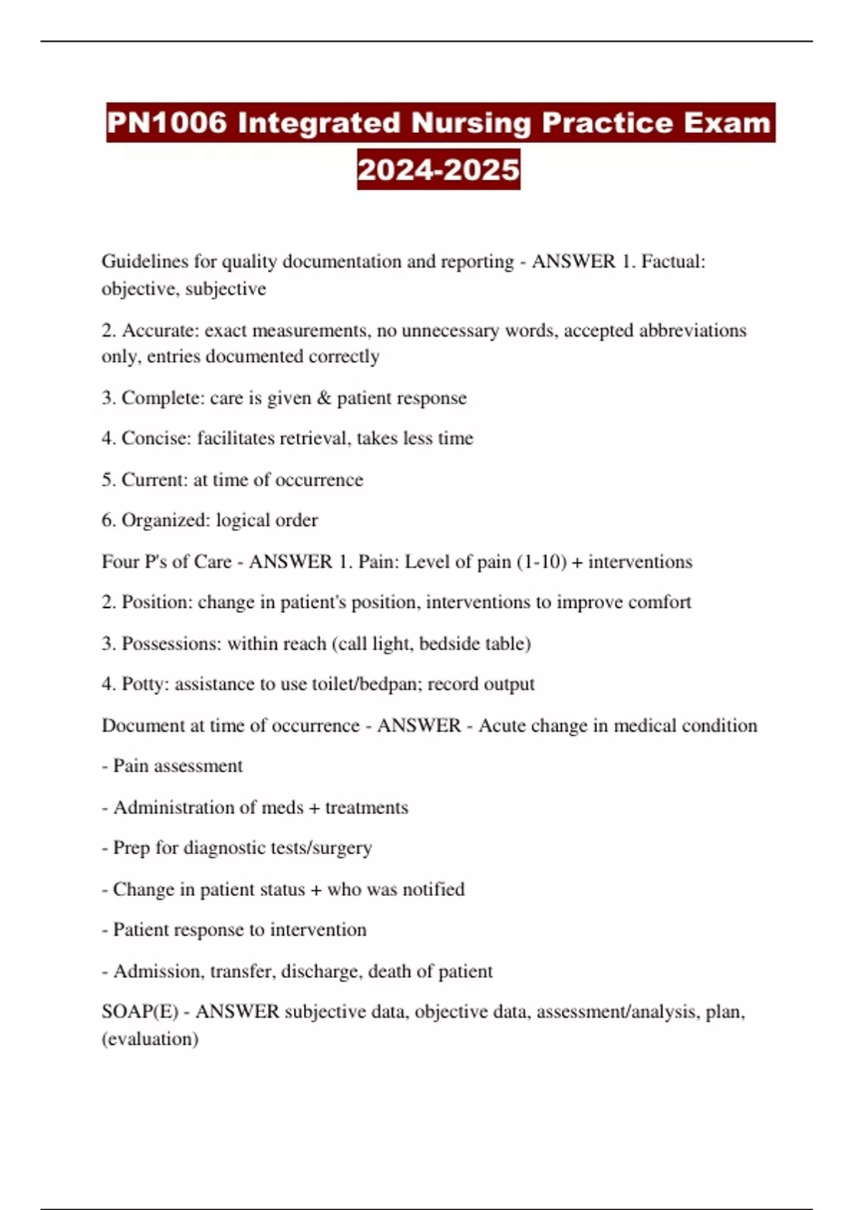 PN 1006 /PN1006 CURRENT BUNDLED EXAMS WITH QUESTIONS AND VERIFIED ANSWERS
