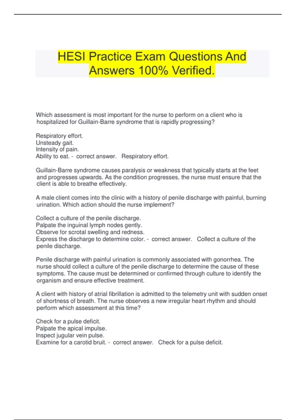 HESI Practice Exam Questions And Answers 100% Verified.