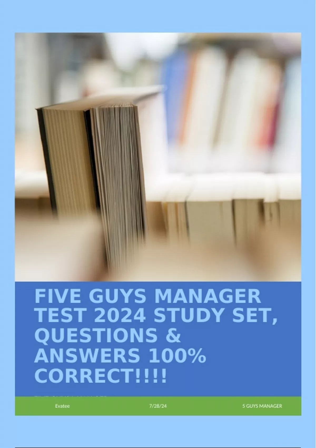 FIVE GUYS MANAGER TEST 2024 STUDY SET, QUESTIONS & ANSWERS 100% CORRECT!!!!