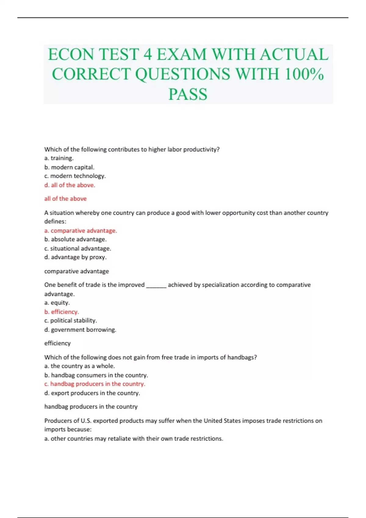 ECON TEST 4 EXAM WITH ACTUAL CORRECT QUESTIONS WITH 100% PASS