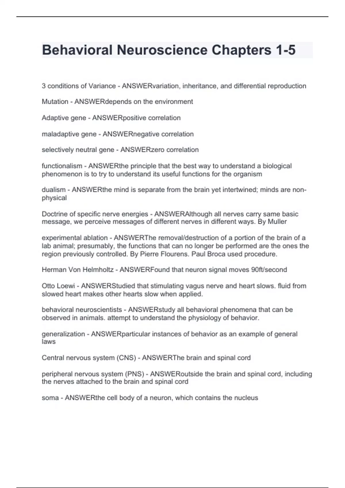 Behavioral Neuroscience Chapters 1-5.Fundamental exams with solutions
