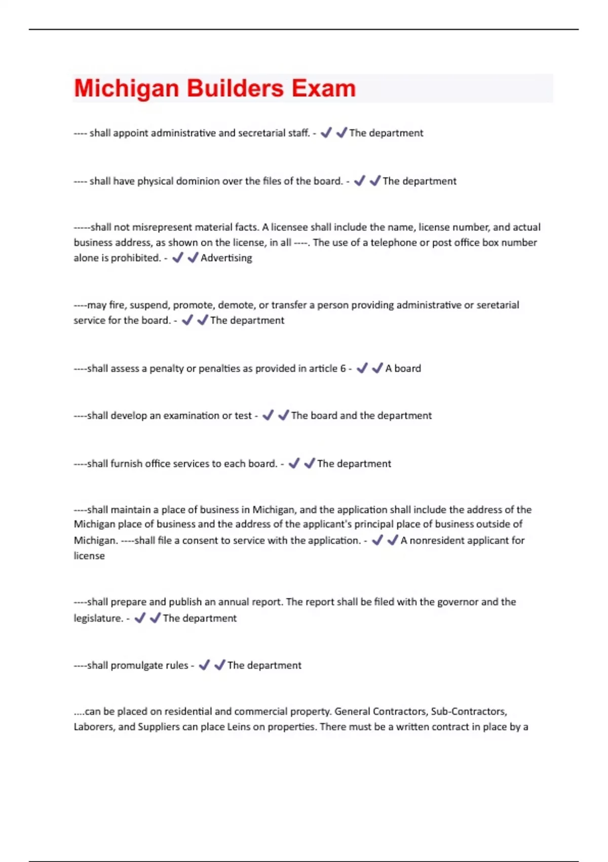 Michigan Real Estate Exam Practice Updated 2024/2025 Actual Questions and answers with complete solutions