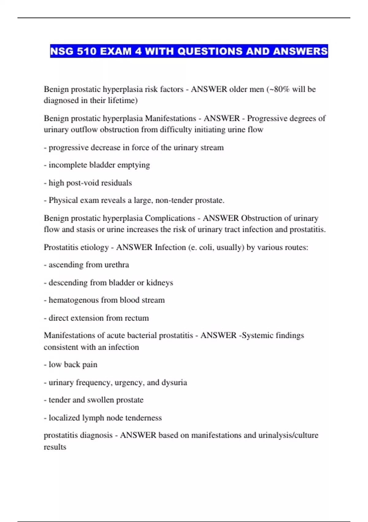 NSG 510 EXAM 4 WITH QUESTIONS AND ANSWERS