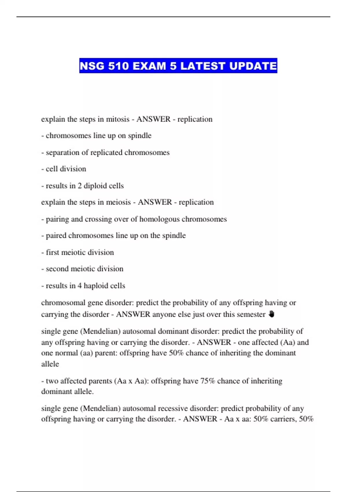 NSG 510 /NSG510 BUNDLED EXAMS WITH QUESTIONS AND VERIFIED ANSWERS