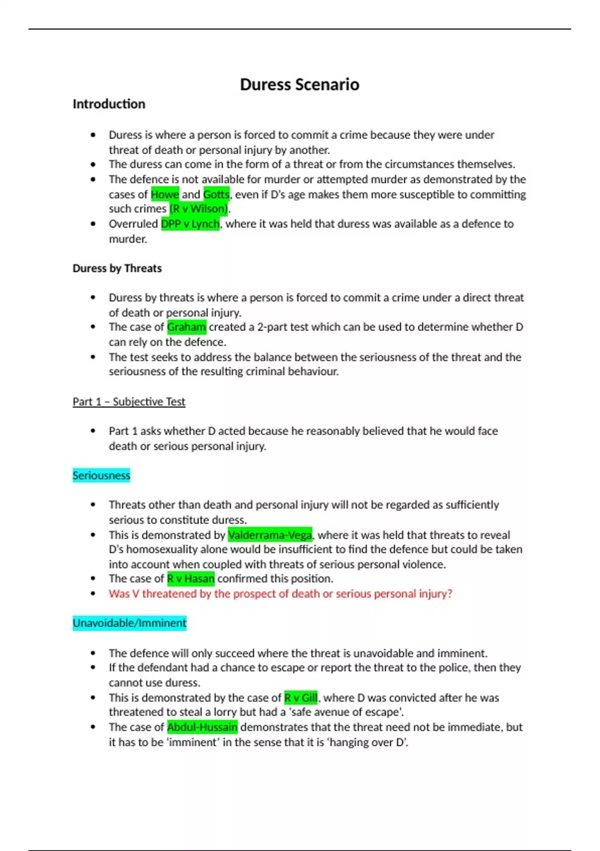 A clearly structured duress scenario plan. Used for WJEC exam but applicable for other exam boards. Cases are included. A* standard.