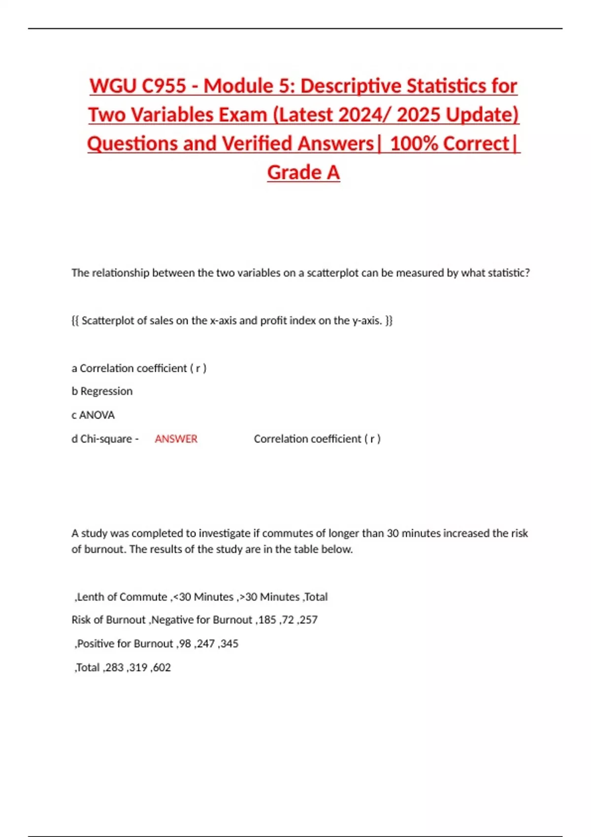 WGU C955 - Module 5: Descriptive Statistics for Two Variables Exam (Latest 2024/ 2025 Update) Questions and Verified Answers| 100% Correct| Grade A