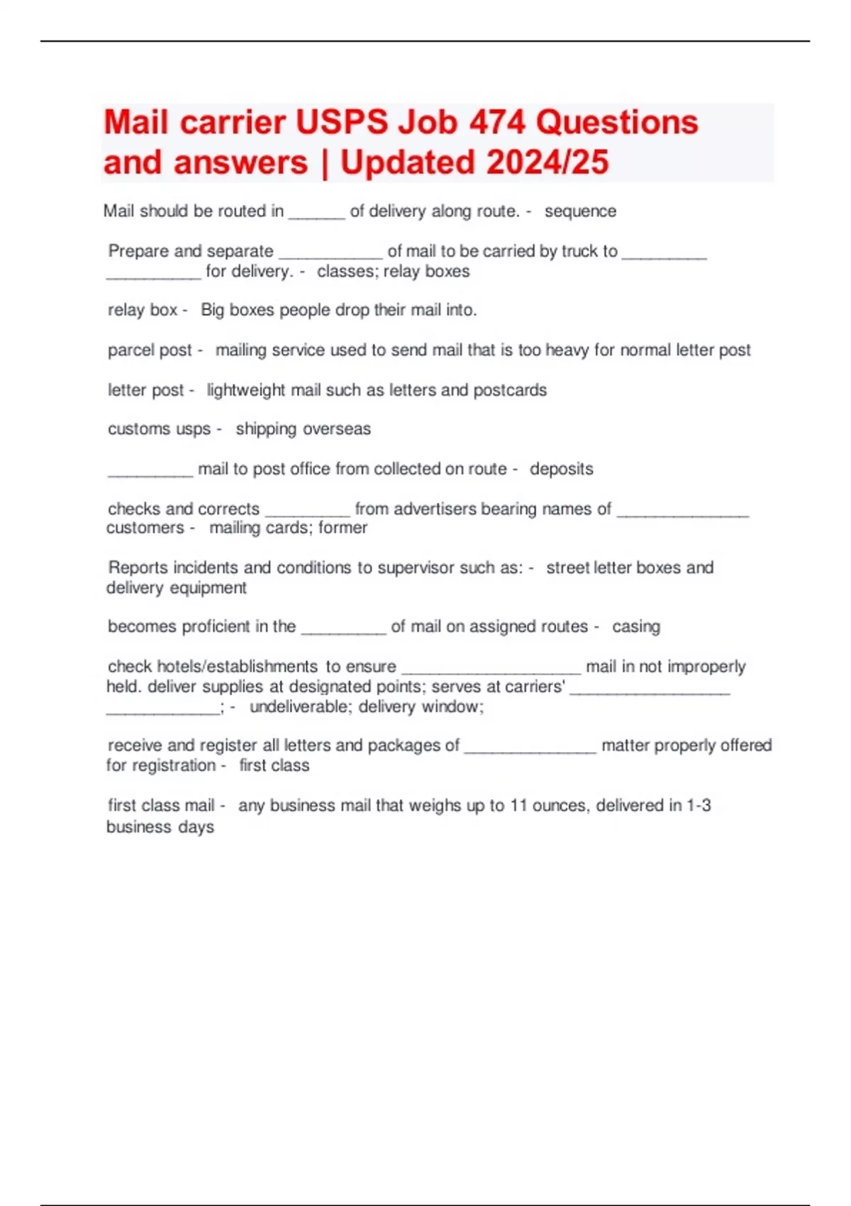 Mail carrier USPS Job 474 Questions and answers | Updated 2024/25