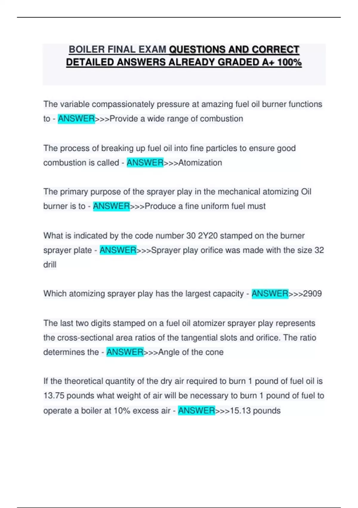 BOILER FINAL EXAM QUESTIONS AND CORRECT DETAILED ANSWERS ALREADY GRADED A+ 100%