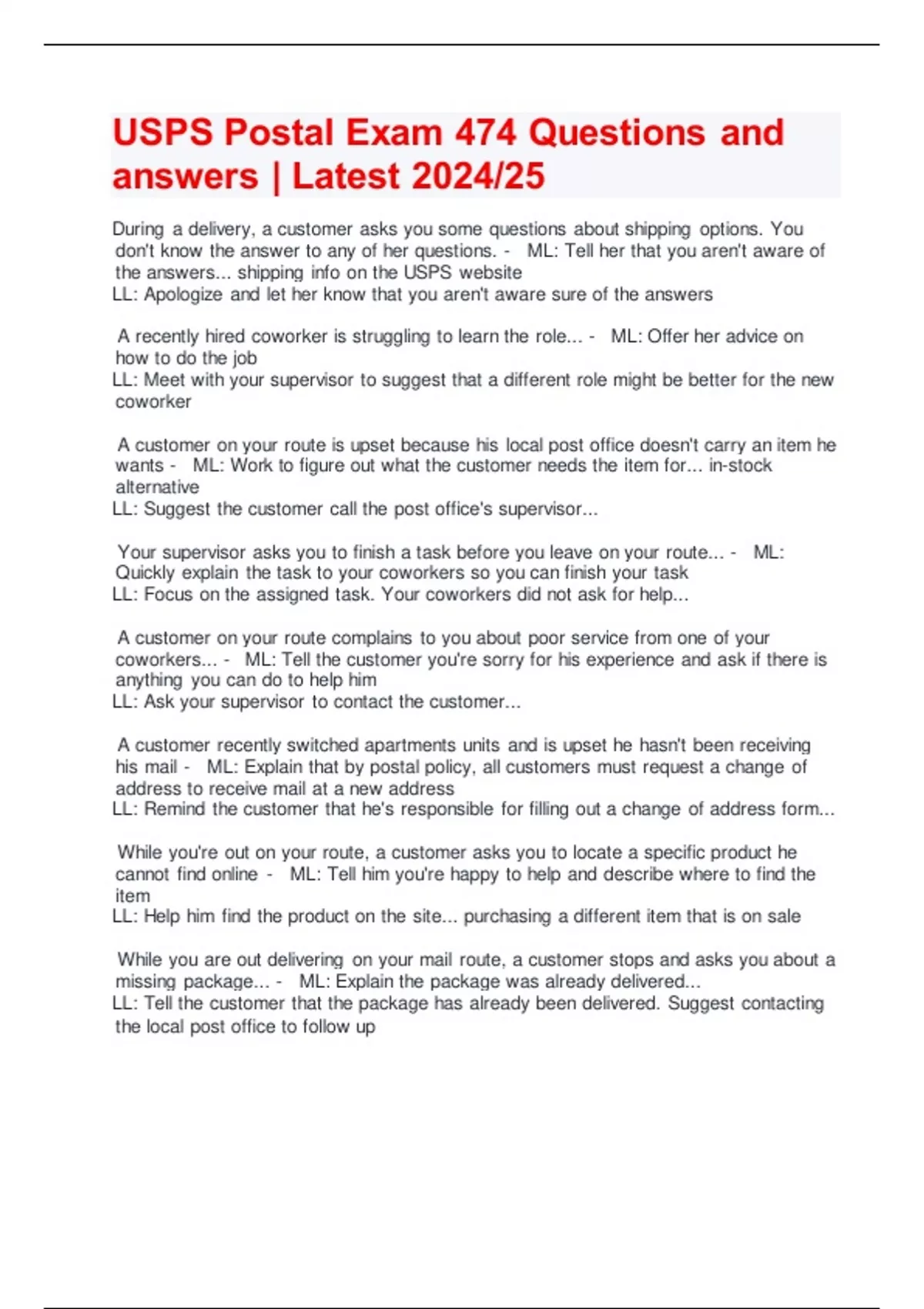 USPS Postal Exam 474 Questions and answers | Latest 2024/25
