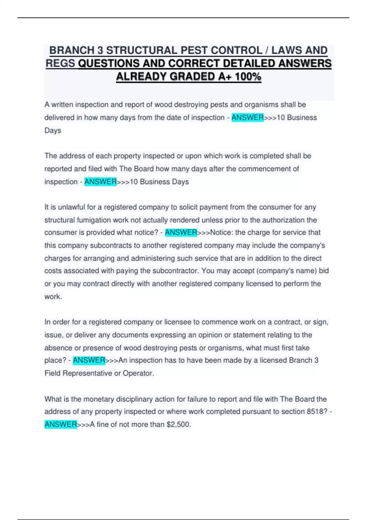 BRANCH 3 STRUCTURAL PEST CONTROL LAWS AND REGS QUESTIONS AND CORRECT DETAILED ANSWERS ALREADY GRADED A+ 100% BRANCH 3 STRUCTURAL PEST CONTROL LAWS AND REGS QUESTIONS AND CORRECT DETAILED ANSWERS ALREADY GRADED A+ 100% BRANCH 3 STRUCTURAL PEST CONTROL LAWS AND REGS QUESTIONS AND CORRECT DETAILED ANSWERS ALREADY GRADED A+ 100%
