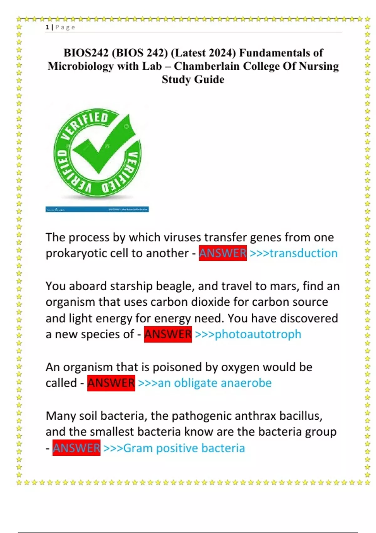 BIOS242 (BIOS 242) (Latest 2024) Fundamentals of Microbiology with Lab – Chamberlain College Of Nursing Study Guide
