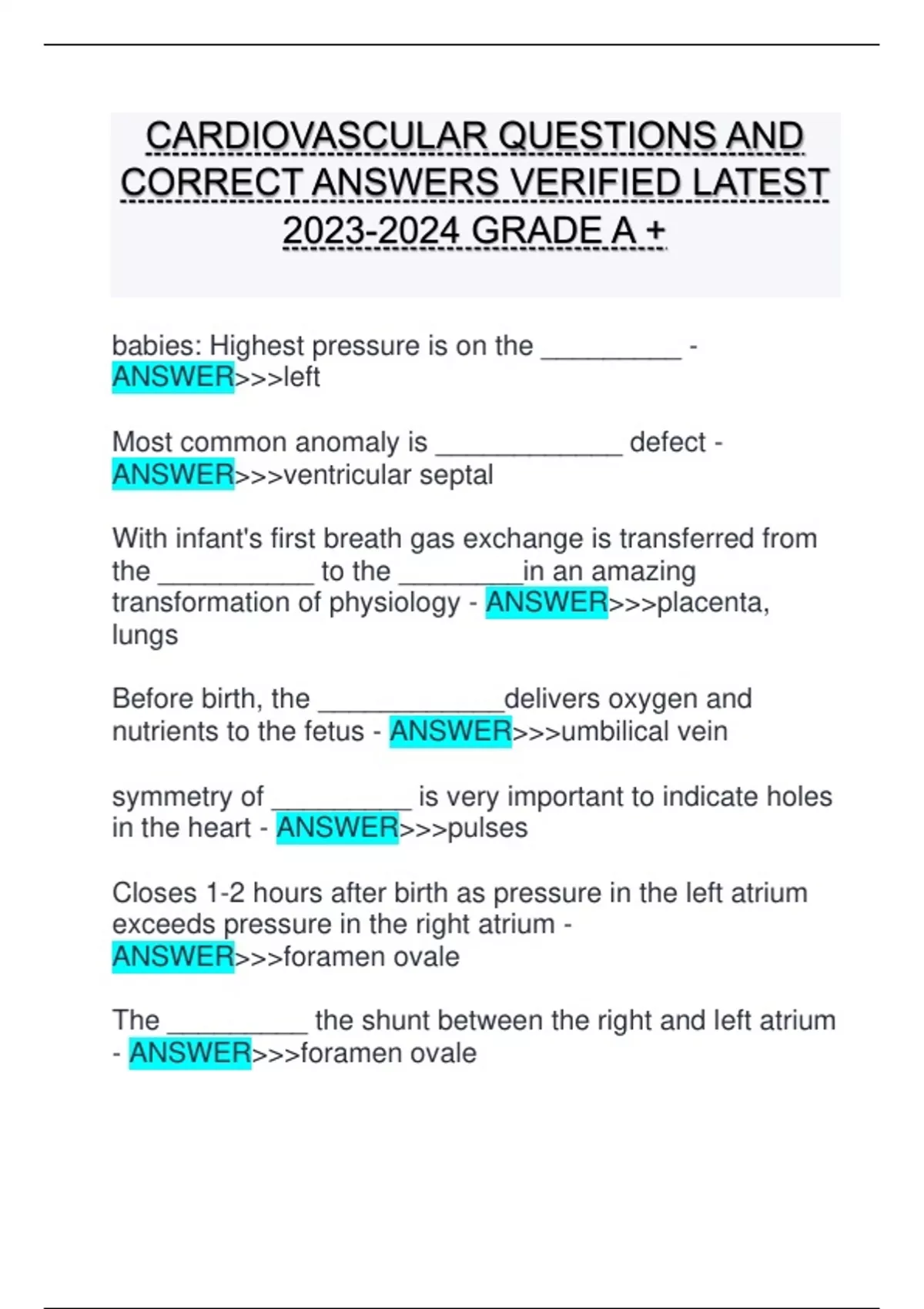 CARDIOVASCULAR QUESTIONS AND CORRECT ANSWERS VERIFIED LATEST GRADE A + CARDIOVASCULAR QUESTIONS AND CORRECT ANSWERS VERIFIED LATEST GRADE A + CARDIOVASCULAR QUESTIONS AND CORRECT ANSWERS VERIFIED LATEST GRADE A + CARDIOVASCULAR QUESTIONS AND CORRECT ANSWERS VERIFIED LATEST GRADE A +CARDIOVASCULAR QUESTIONS AND CORRECT ANSWERS VERIFIED LATEST GRADE A + CARDIOVASCULAR QUESTIONS AND CORRECT ANSWERS VERIFIED LATEST GRADE A +