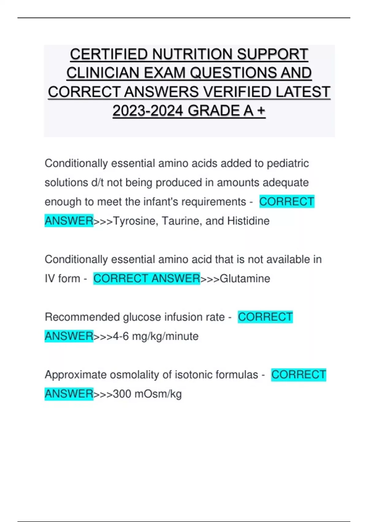 CERTIFIED NUTRITION SUPPORT CLINICIAN EXAM QUESTIONS AND CORRECT ANSWERS VERIFIED LATEST GRADE A + CERTIFIED NUTRITION SUPPORT CLINICIAN EXAM QUESTIONS AND CORRECT ANSWERS VERIFIED LATEST GRADE A + CERTIFIED NUTRITION SUPPORT CLINICIAN EXAM QUESTIONS AND CORRECT ANSWERS VERIFIED LATEST GRADE A + CERTIFIED NUTRITION SUPPORT CLINICIAN EXAM QUESTIONS AND CORRECT ANSWERS VERIFIED LATEST GRADE A +CERTIFIED NUTRITION SUPPORT CLINICIAN EXAM QUESTIONS AND CORRECT ANSWERS VERIFIED LATEST GRADE A +