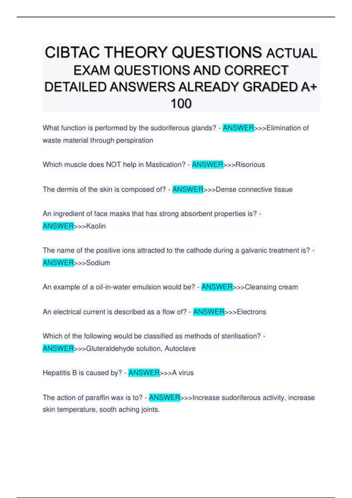 CIBTAC THEORY QUESTIONS ACTUAL EXAM QUESTIONS AND CORRECT DETAILED ANSWERS ALREADY GRADED A+ 100