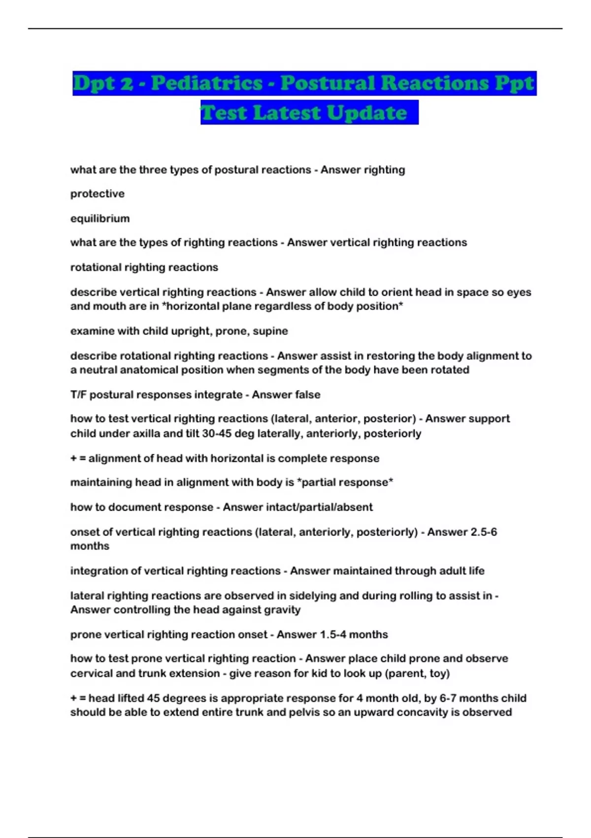 Dpt 2 - Pediatrics - Postural Reactions Ppt Test Latest Update ...