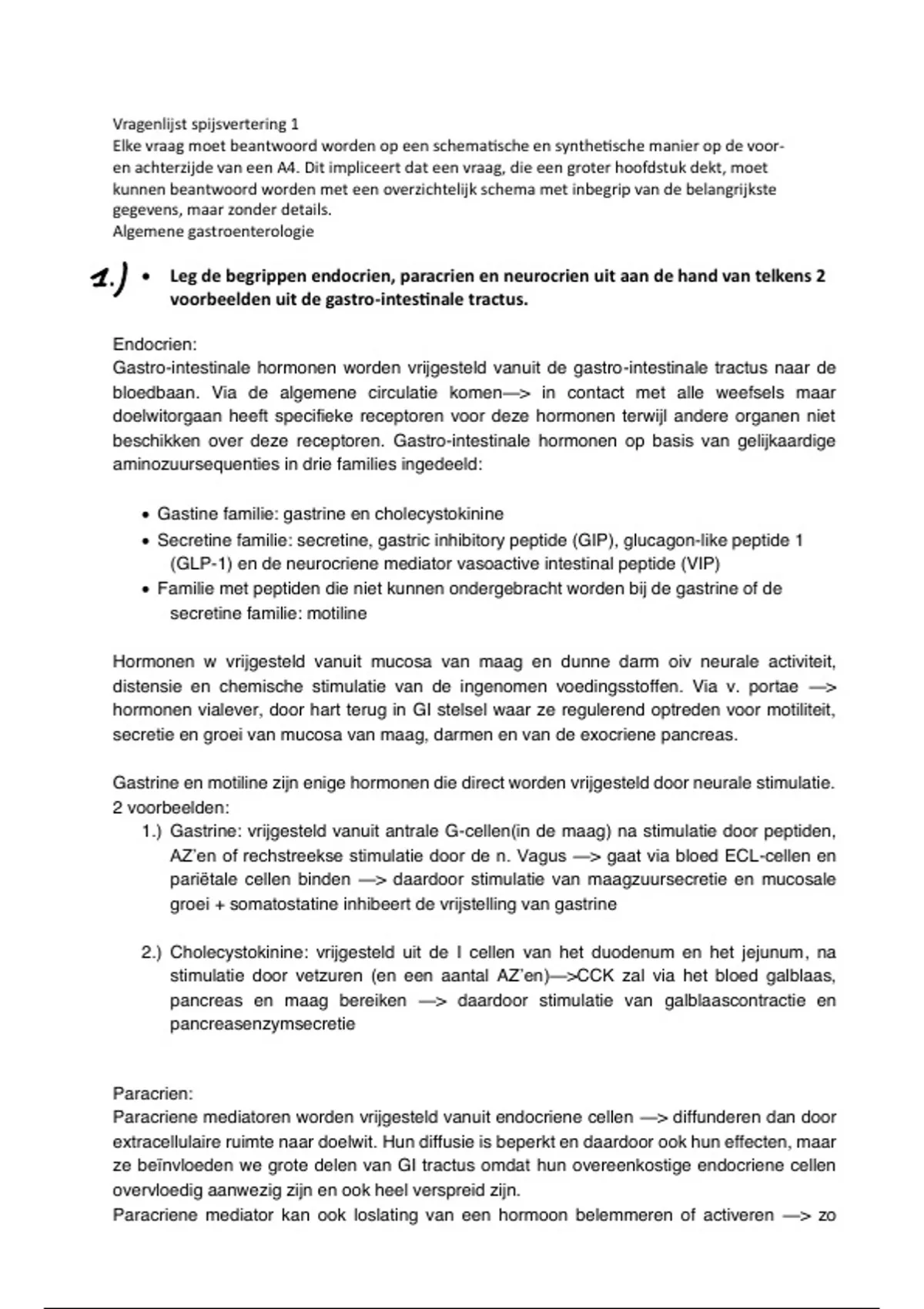 1.) Gastrine: vrijgesteld vanuit antrale G-cellen(in de maag) na stimulatie door peptiden,