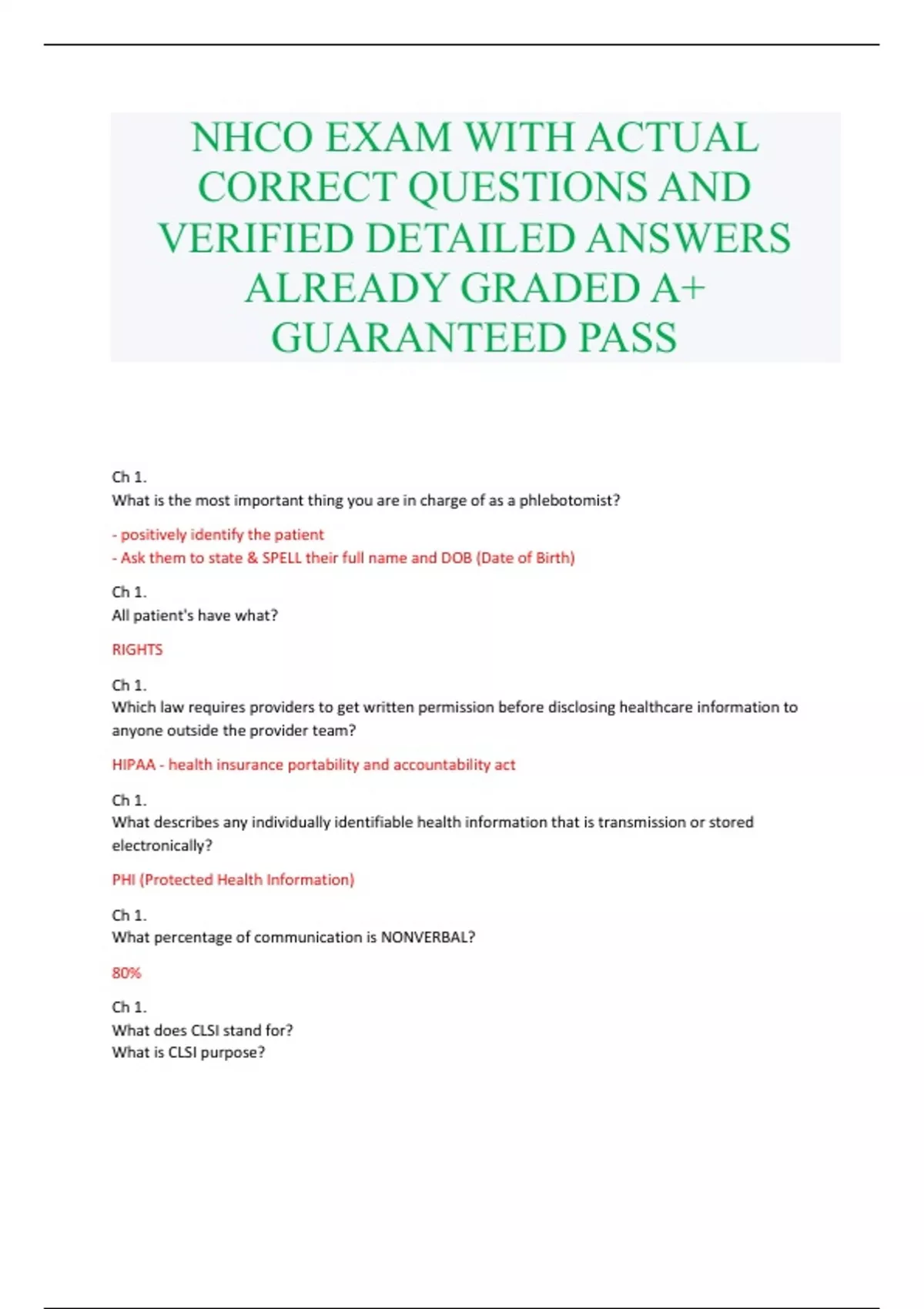 NHCO EXAM WITH ACTUAL CORRECT QUESTIONS AND VERIFIED DETAILED ANSWERS ALREADY GRADED A+ GUARANTEED PASS