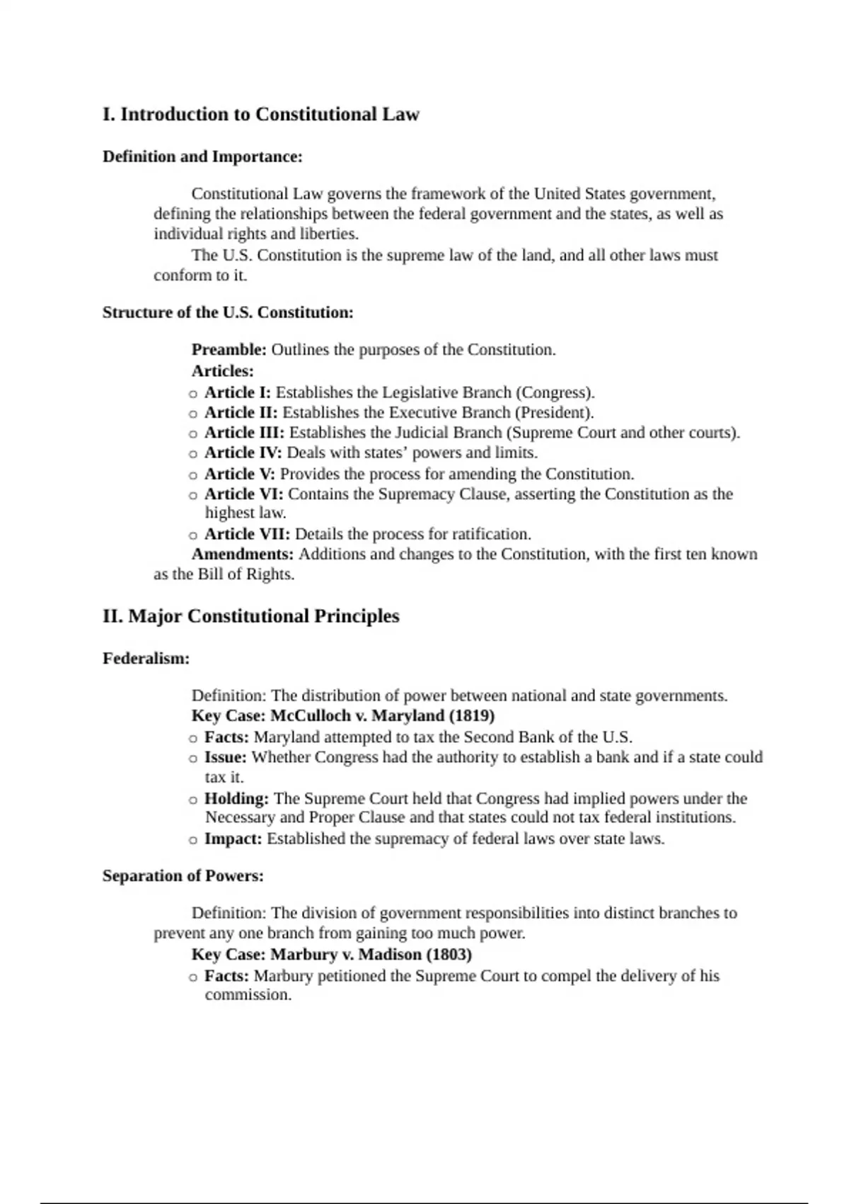 Unlock a thorough understanding of Constitutional Law with these clear and concise study notes for Harvard Law School's L201 course. Covering key principles, landmark cases like Marbury v. Madison and Roe v. Wade, and essential concepts such as Federalism and Judicial Review, these notes are perfect for exam prep and deepening your legal knowledge. Ideal for first-year law students and anyone needing a solid grasp of Constitutional Law. Get these essential notes now and boost your studies!