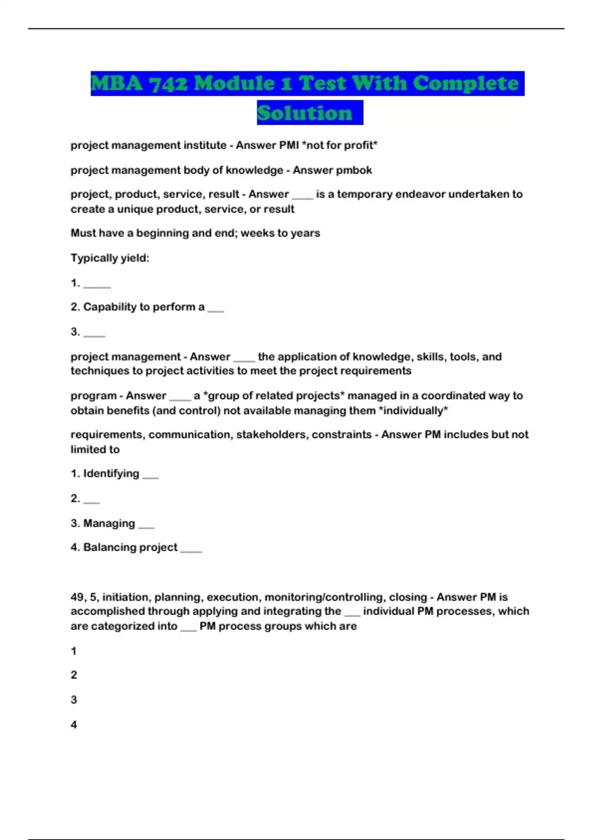 MBA742 PACKAGED EXAMS WITH COMPLETE SOLUTION