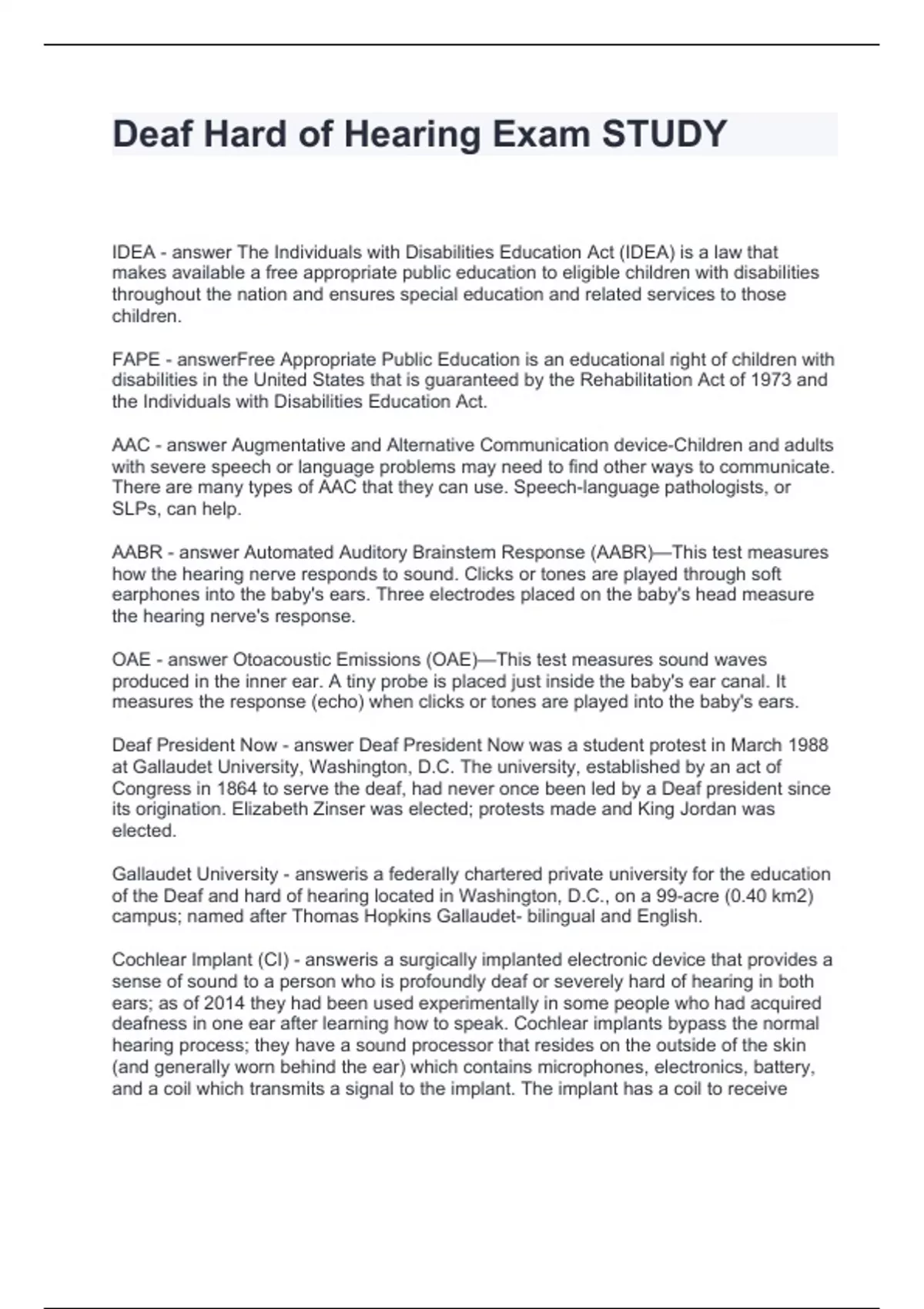 Deaf Hard of Hearing Exam STUDY Questions and Answers 2024