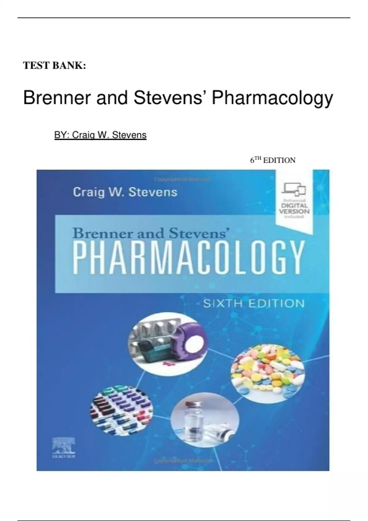Test Bank for Brenner and Stevens’ Pharmacology 6th Edition BY Craig Stevens|| Latest Edition