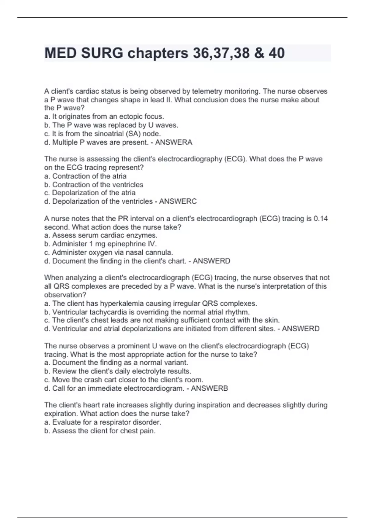 MED SURG chapters 36,37,38 & 40.Actual questions answered accurately