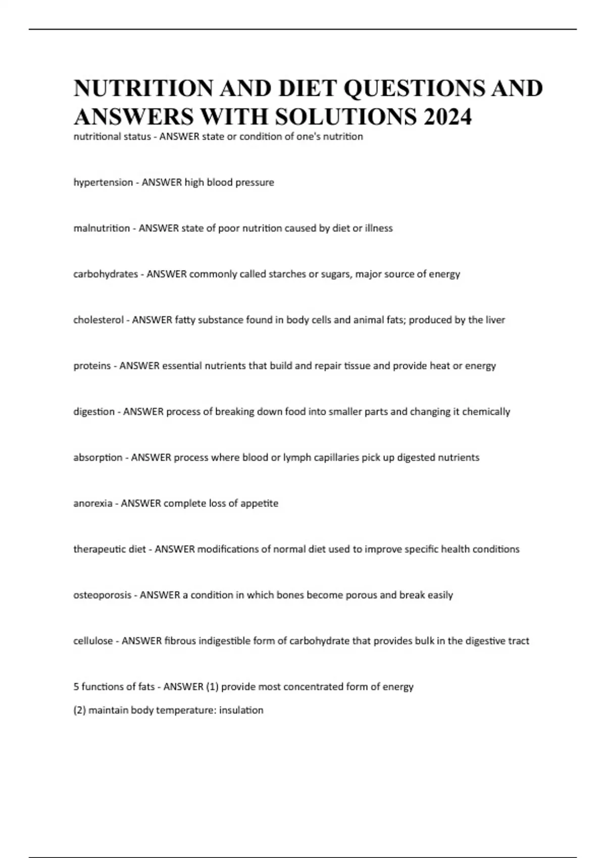 NUTRITION AND DIET QUESTIONS AND ANSWERS WITH SOLUTIONS 2024