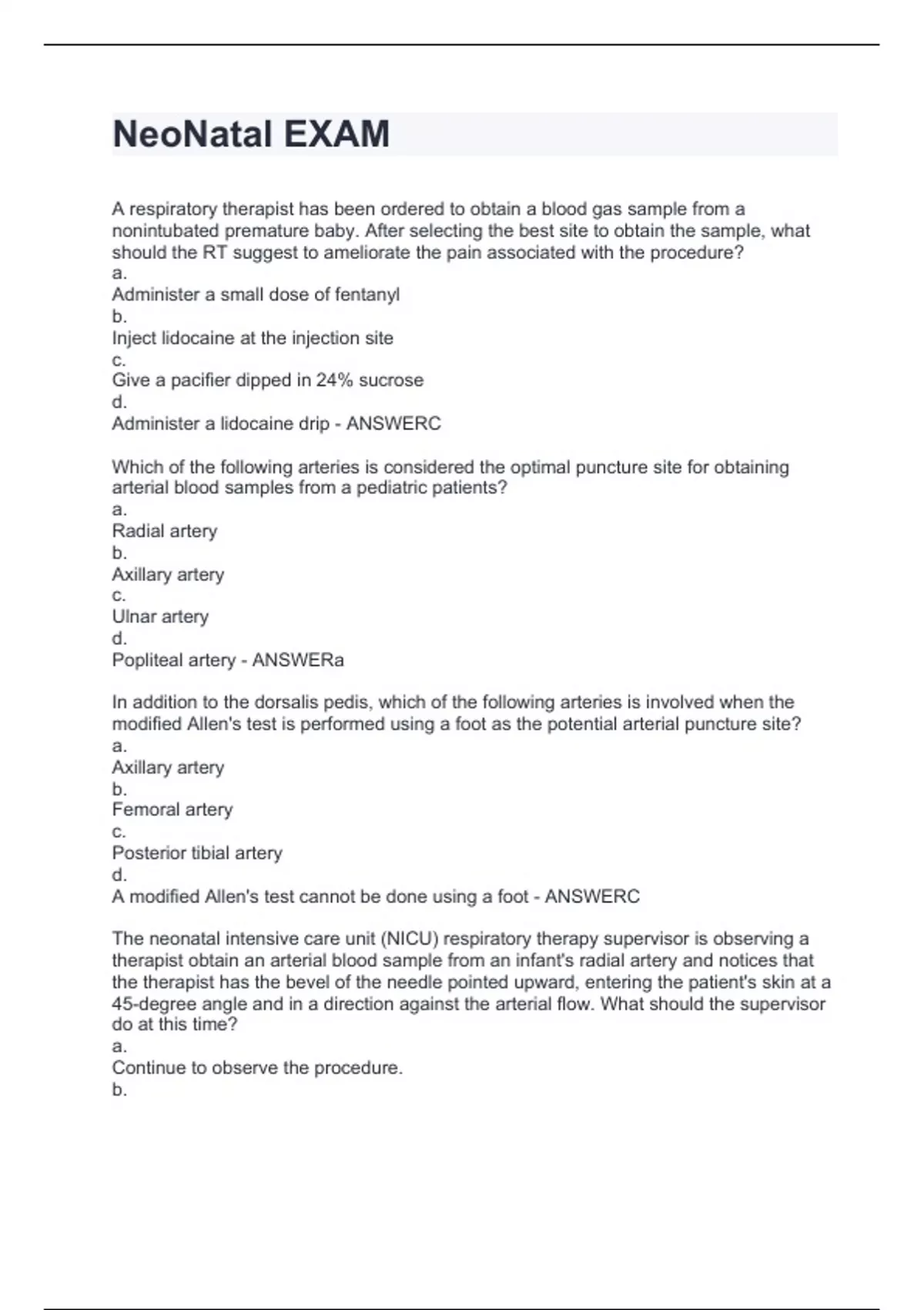 Exam of 24 pages for the course NICU STUDY MATERIAL at NICU STUDY MATERIAL (NeoNatal EXAM.)