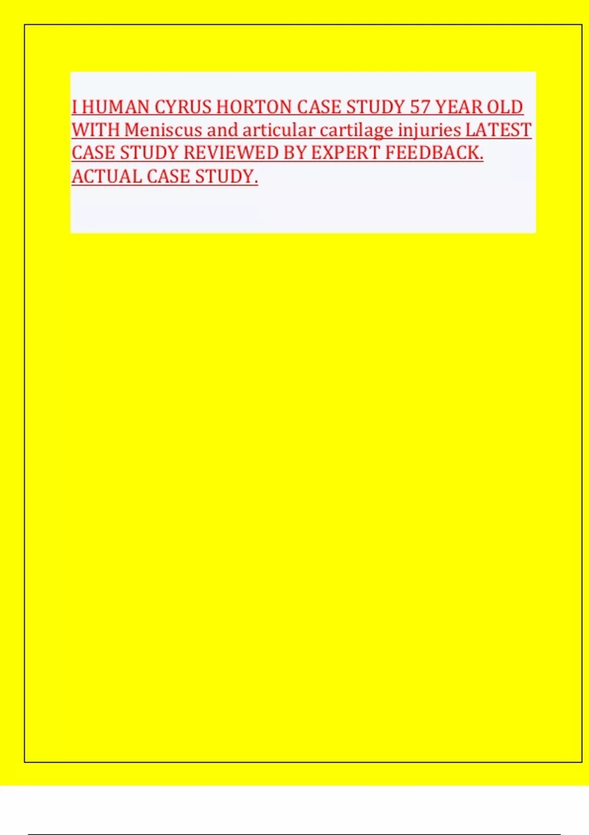 I HUMAN CYRUS HORTON CASE STUDY 57 YEAR OLD WITH Meniscus and articular cartilage injuries LATEST CASE STUDY REVIEWED BY EXPERT FEEDBACK. ACTUAL CASE STUDY.