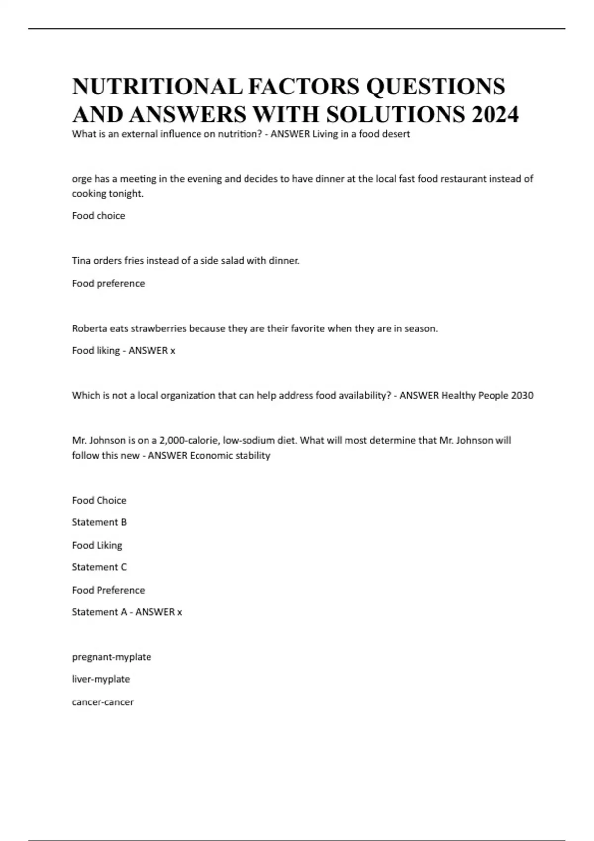 NUTRITIONAL FACTORS QUESTIONS AND ANSWERS WITH SOLUTIONS 2024