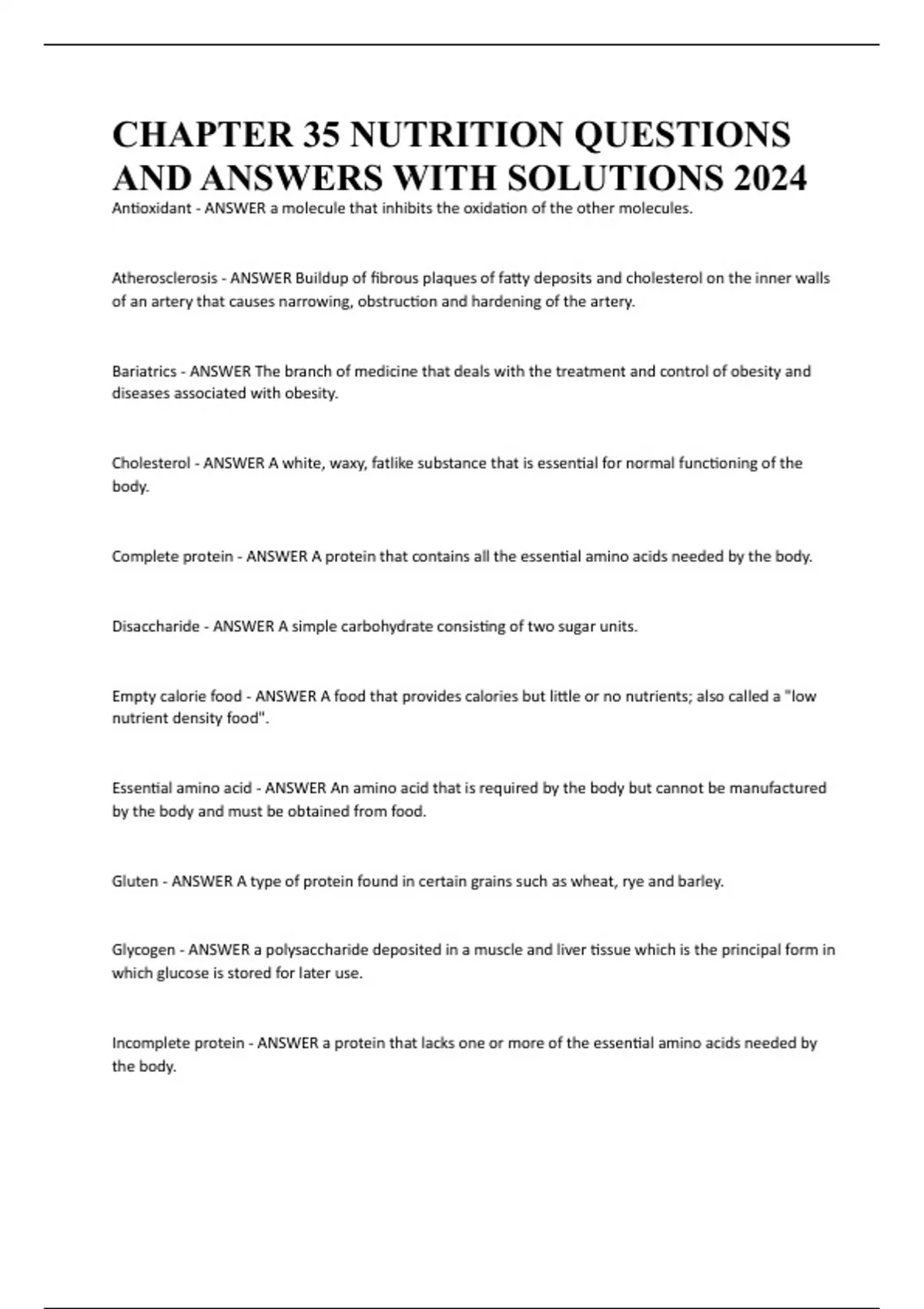 CHAPTER 35 NUTRITION QUESTIONS AND ANSWERS WITH SOLUTIONS 2024
