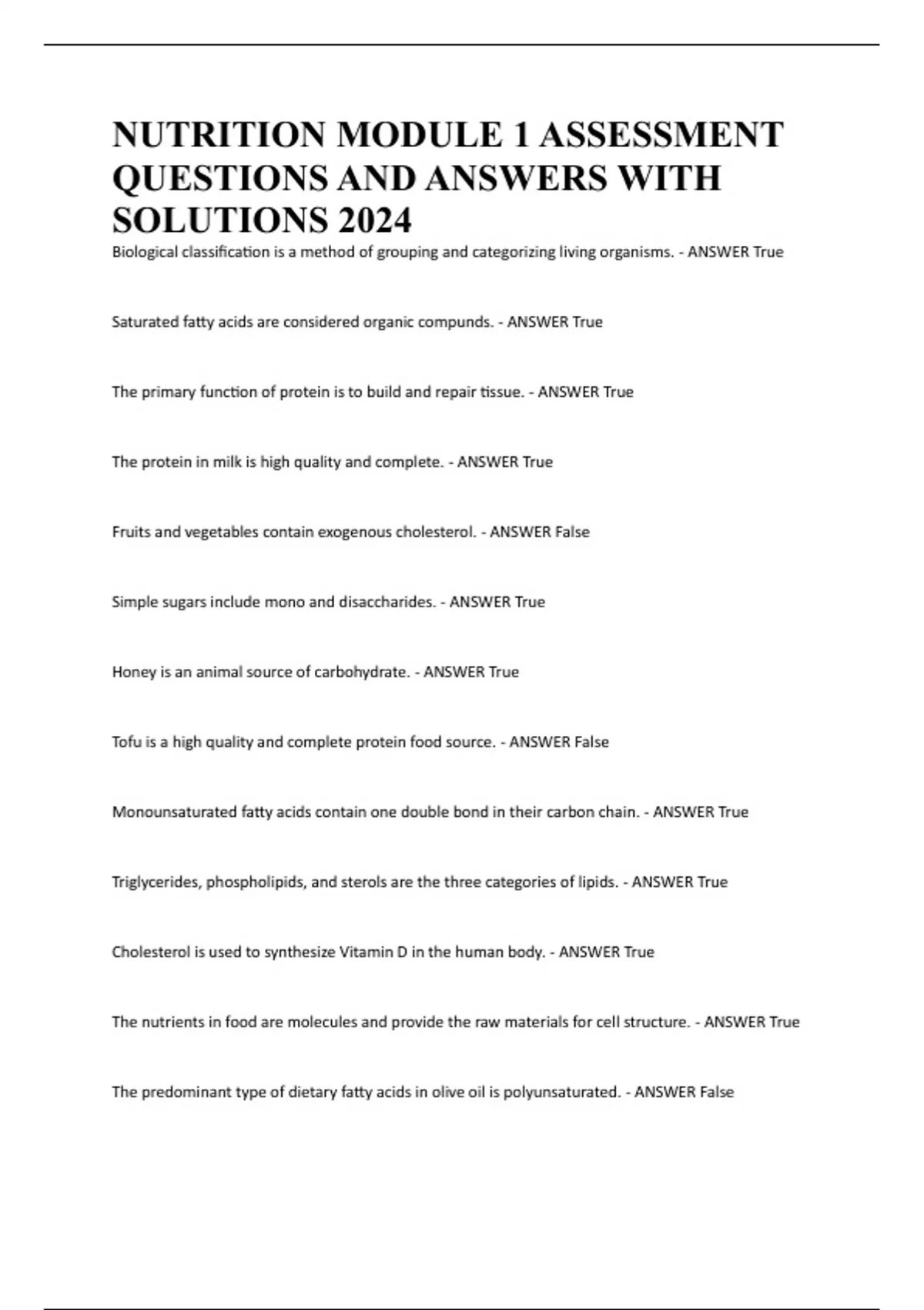 NUTRITION MODULE 1 ASSESSMENT QUESTIONS AND ANSWERS WITH SOLUTIONS 2024
