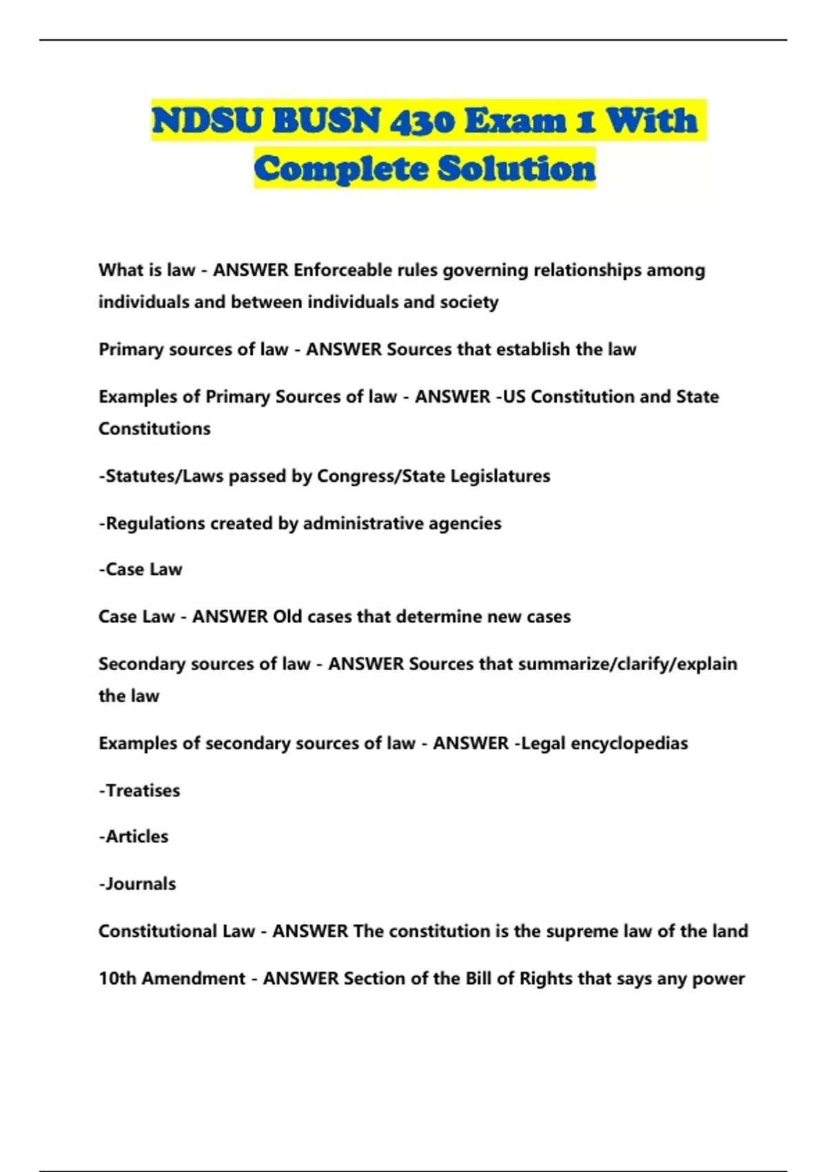 ndsu busn 430 exam 1 with complete solution