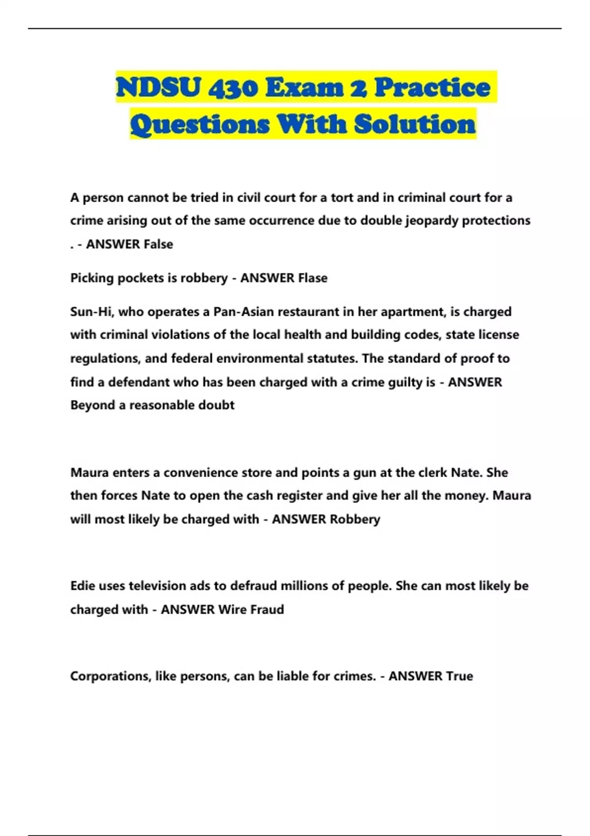 NDSU 430 Exam 2 Practice Questions With Solution...