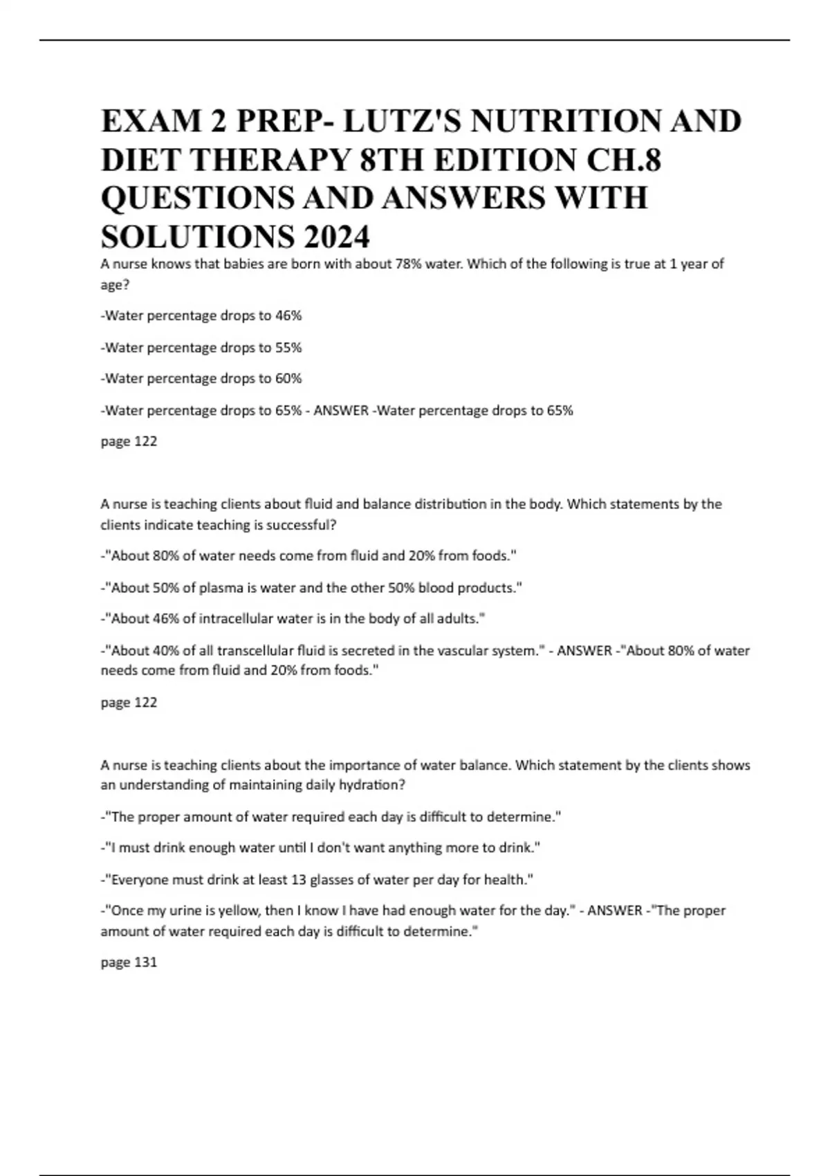 EXAM 2 PREP- LUTZ'S NUTRITION AND DIET THERAPY 8TH EDITION CH.8 QUESTIONS AND ANSWERS WITH SOLUTIONS 2024