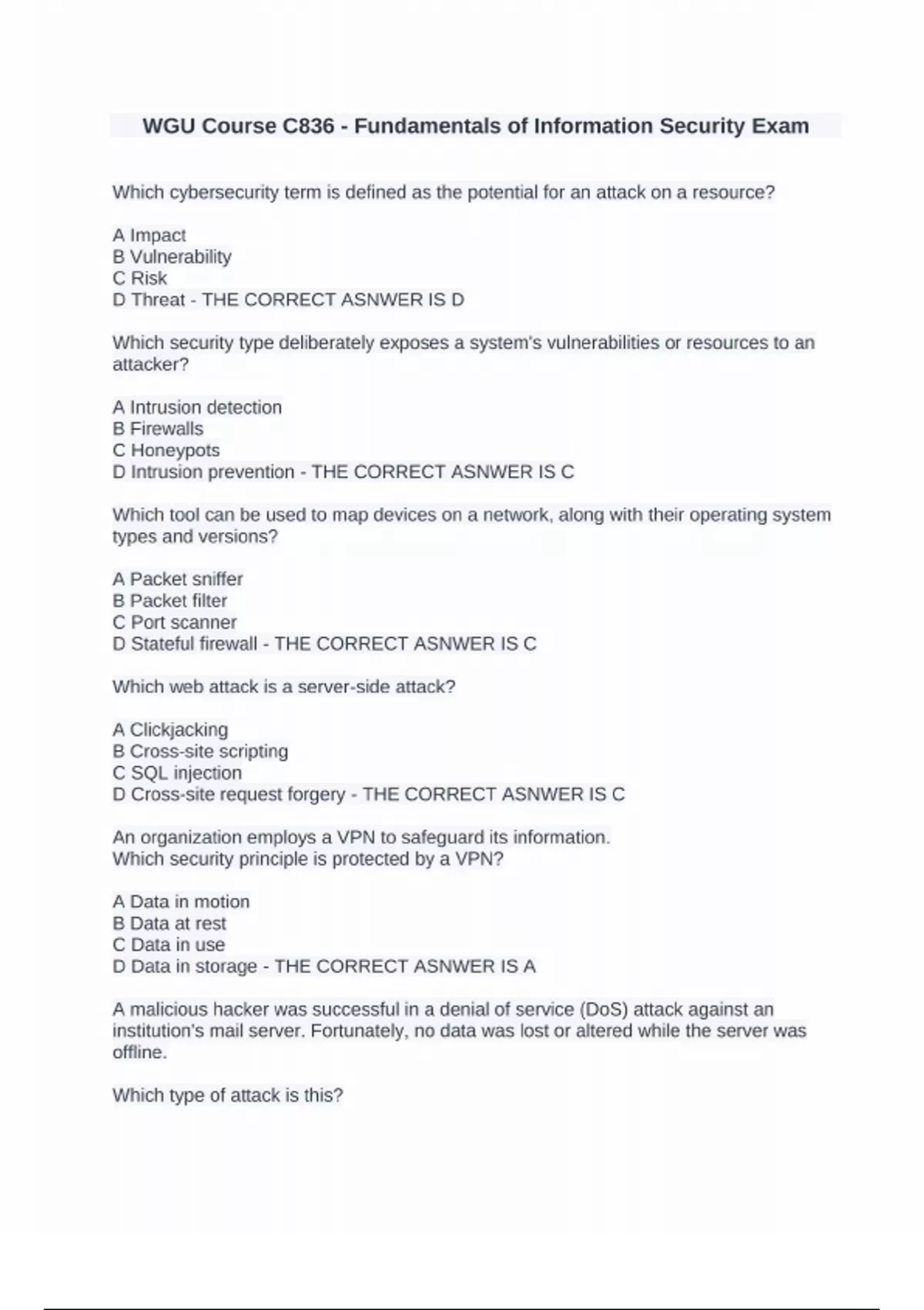 WGU C836 - Fundamentals of Information Security Exam. LATEST UPDATED VERSION