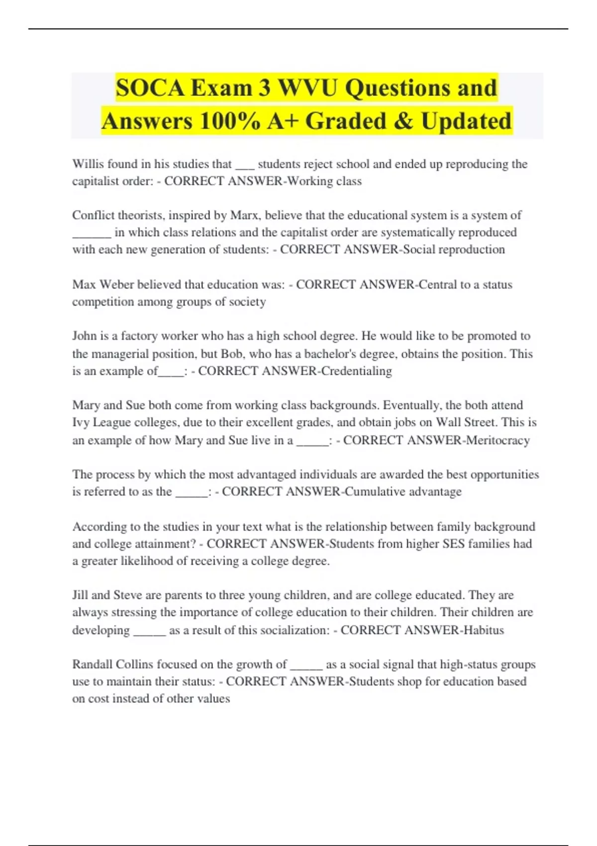 SOCA Exam 3 WVU Questions and Answers 100% A+ Graded & Updated