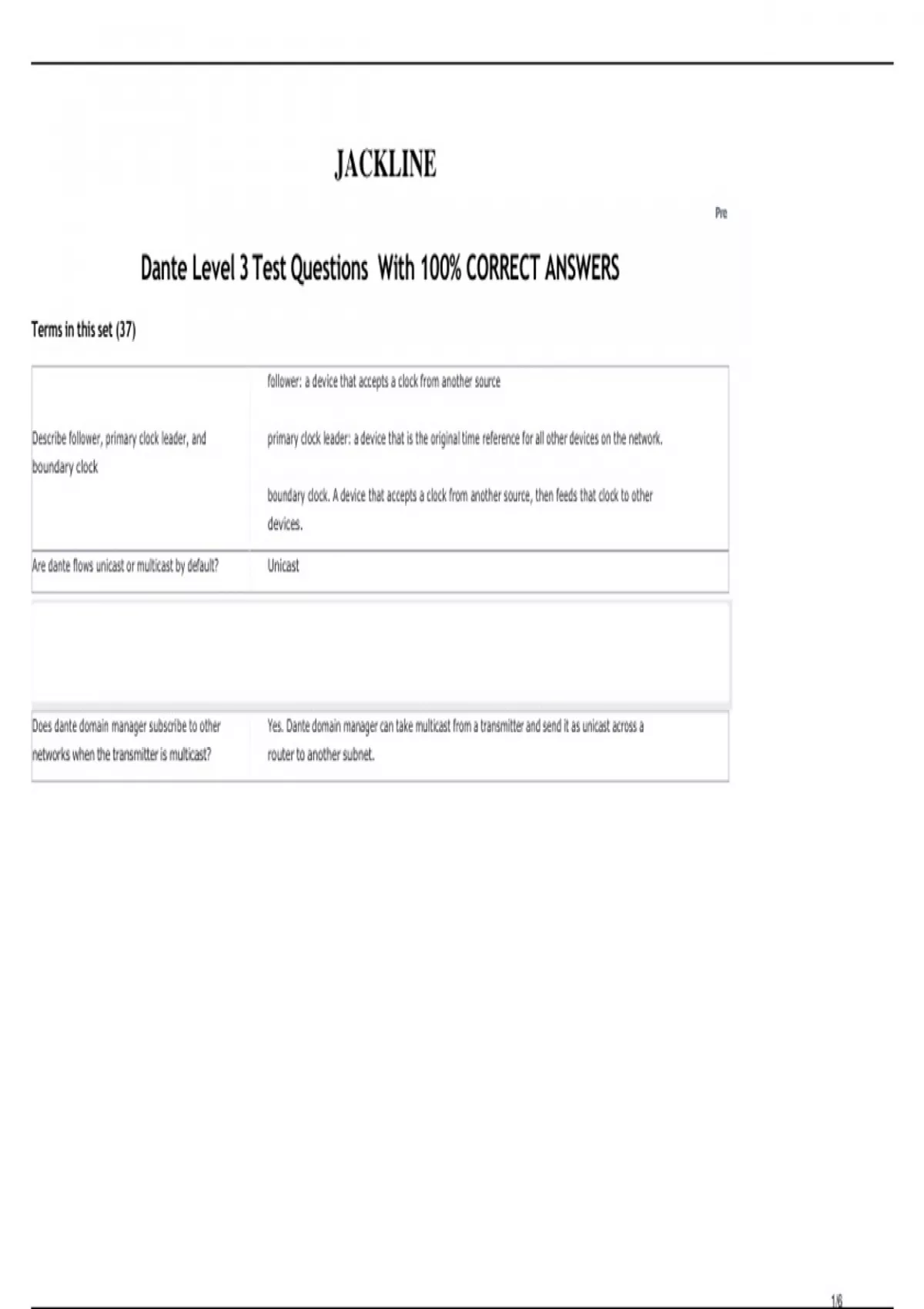 Dante Level 3 Test Questions With 100% CORRECT ANSWERS