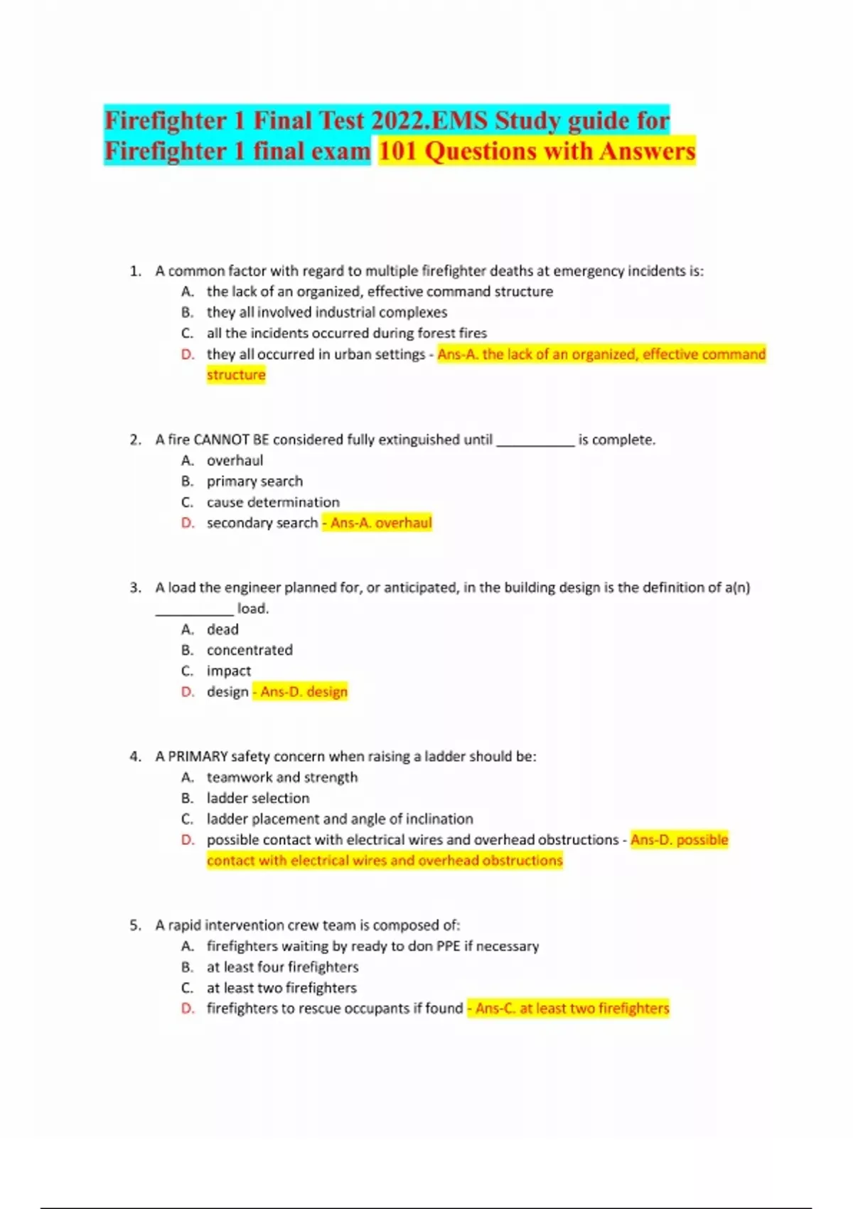 EMS FIRE FIGHTER 1 FINAL TEST. MOST RELIABLE WITH QUESTIONS AND ANSWERS 2024