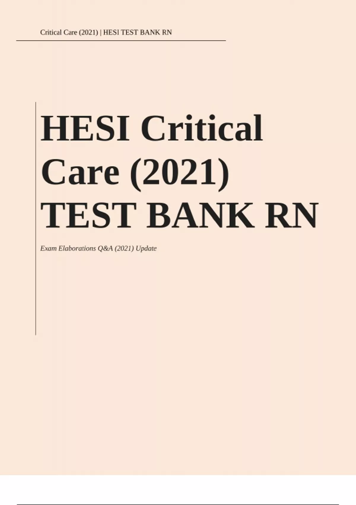 HESI RN CRICAL CARE 2021. LATEST UPDATED VERSION 2023/2024