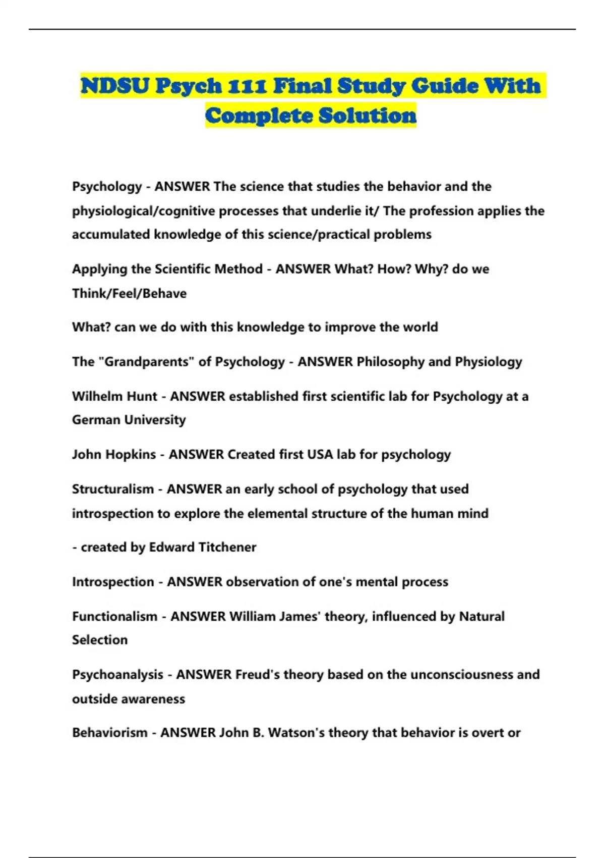 NDSU Psych 111 Final Study Guide With Complete Solution...