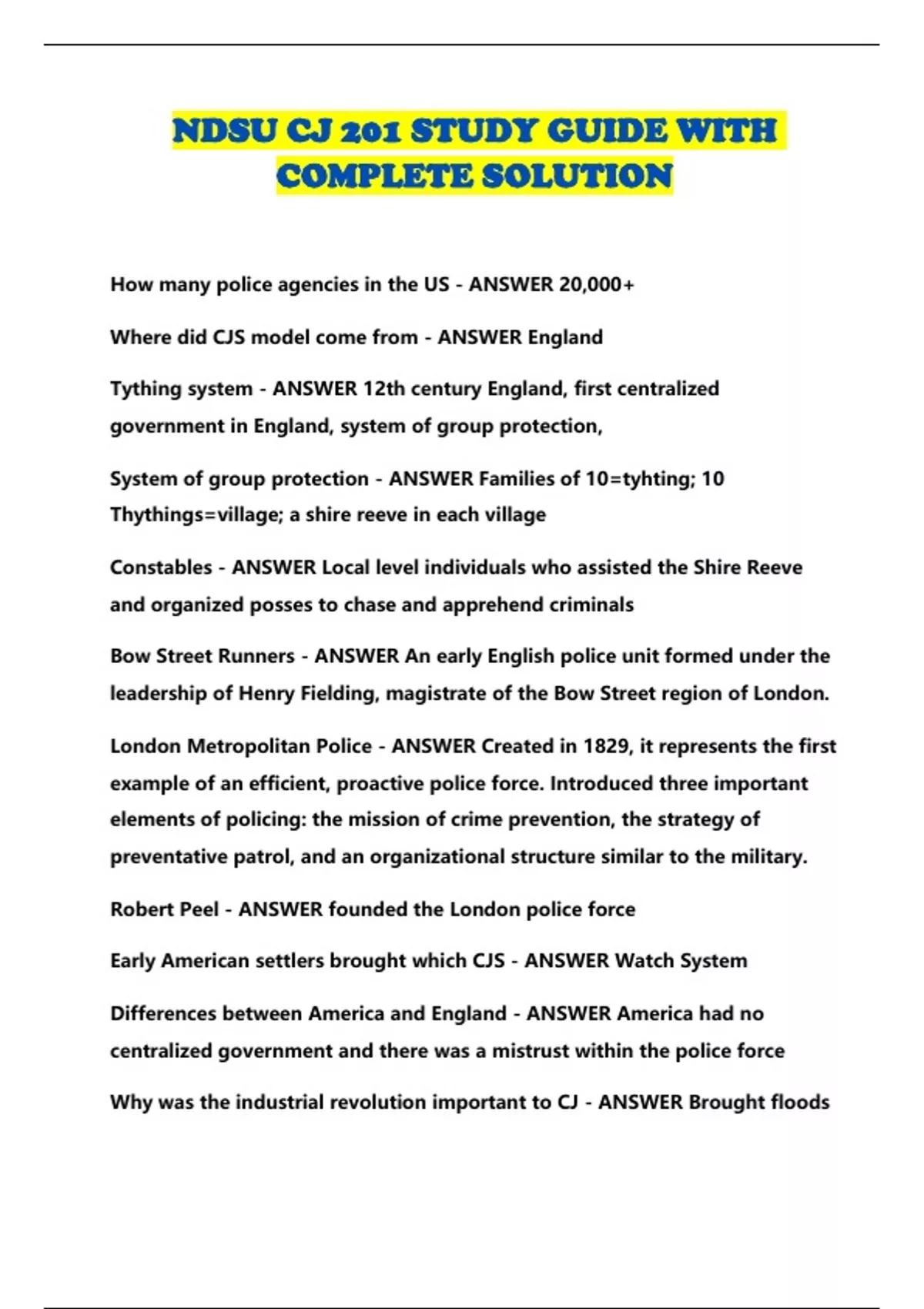 NDSU CJ 201 STU DY GUID E WITH