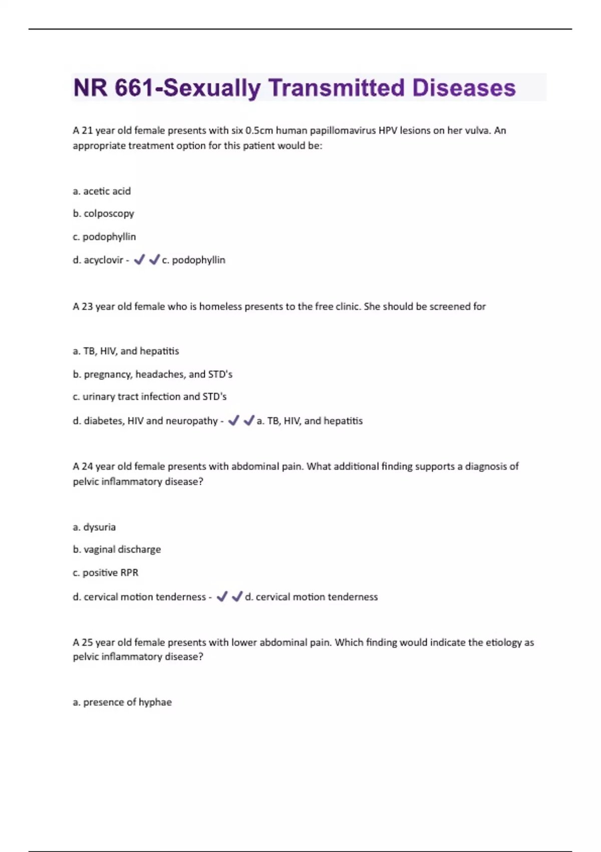 NR 661-Sexually Transmitted Diseases Questions and Answers New (2024/2025) Solved 100% Correct