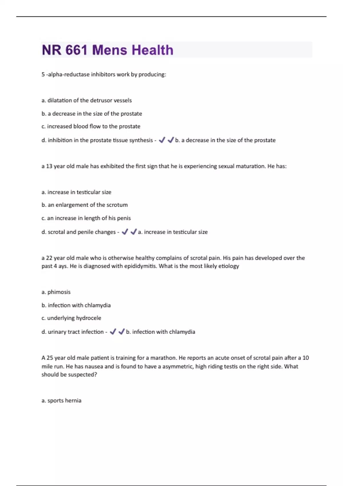 NR 661-Mens Health Questions And Answers With Verified Solutions Graded A+