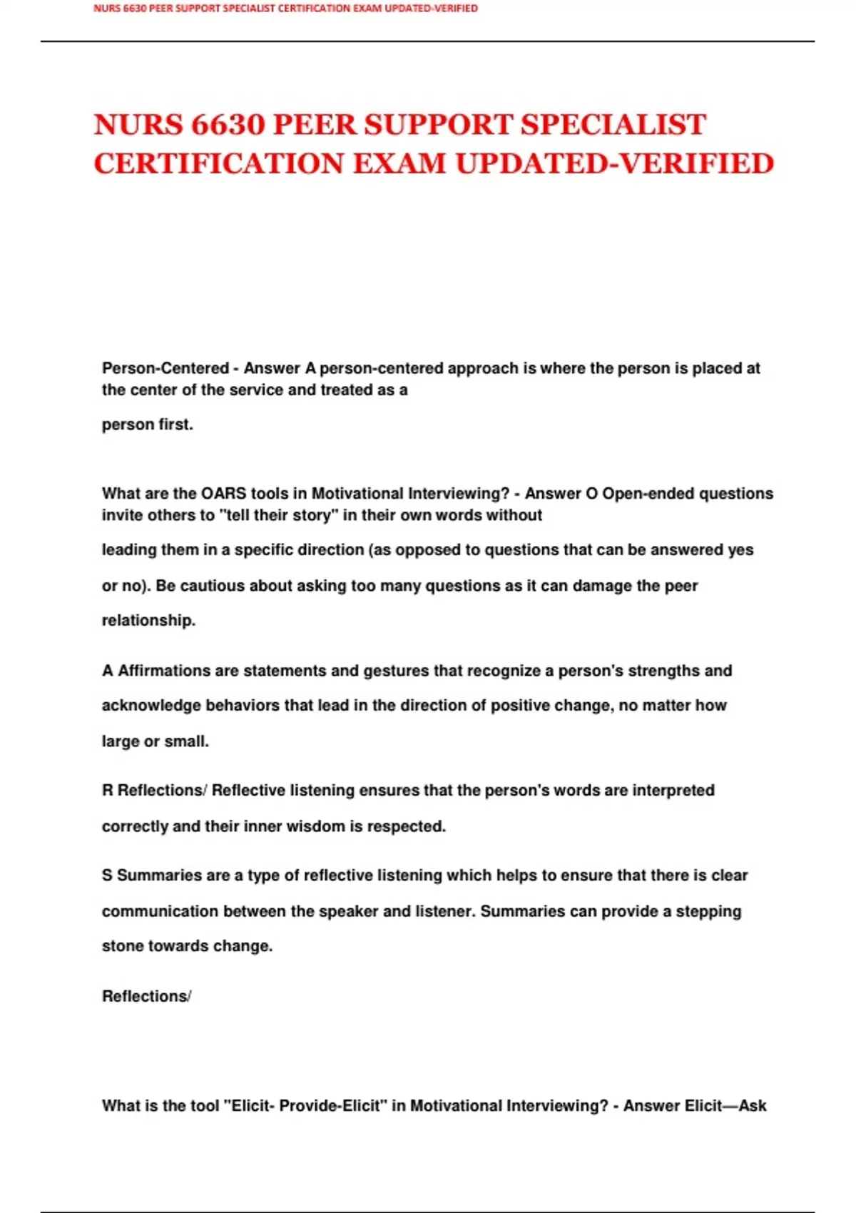 NURS 6630 PEER SUPPORT SPECIALIST CERTIFICATION EXAM UPDATED-VERIFIED